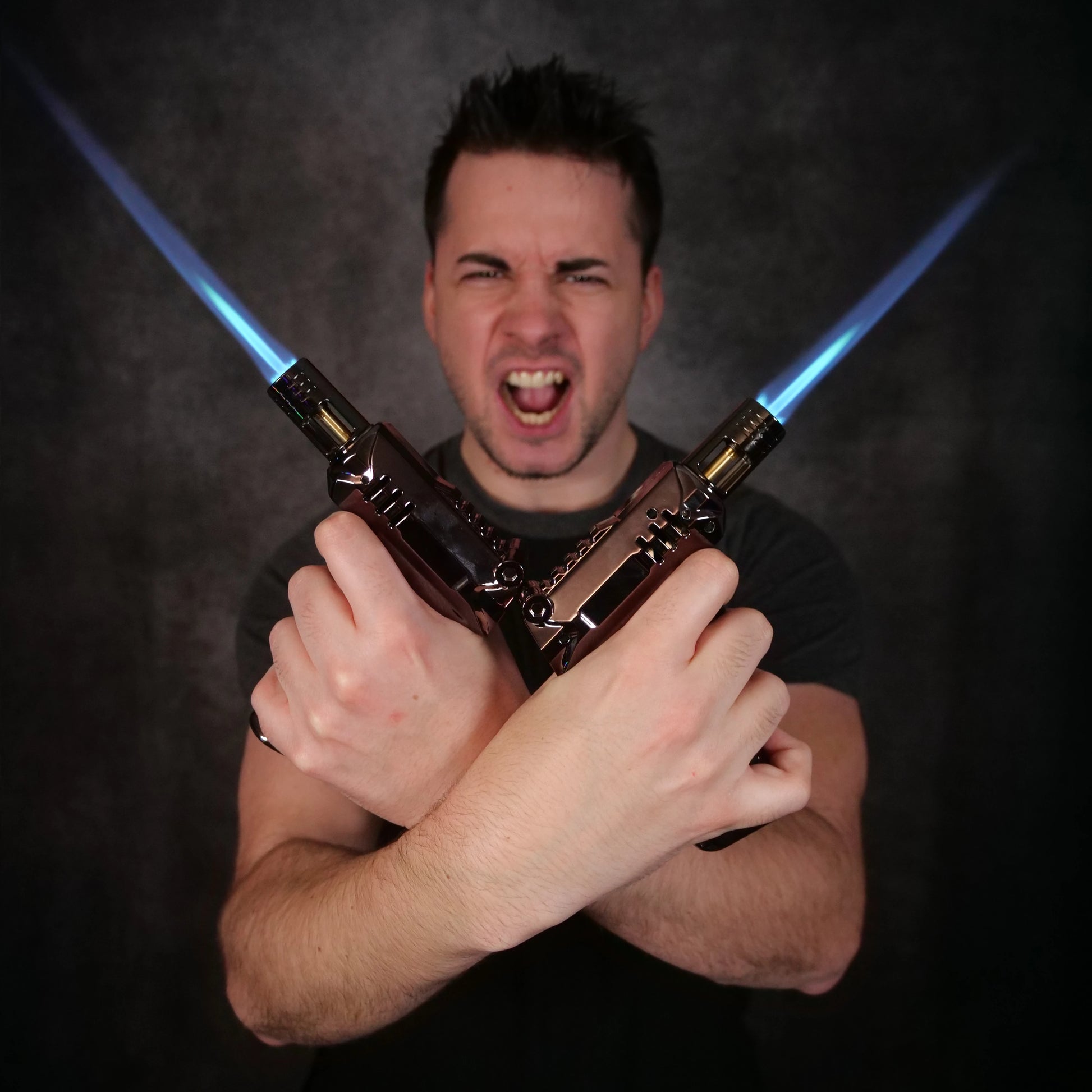 Die neue Generation des Gun Burners: kraftvolle blaue Jetflamme, ergonomische Pistolenform und hochwertige Materialien. Perfekt für Silvester, Outdoor & präzise Zündungen. 🔥