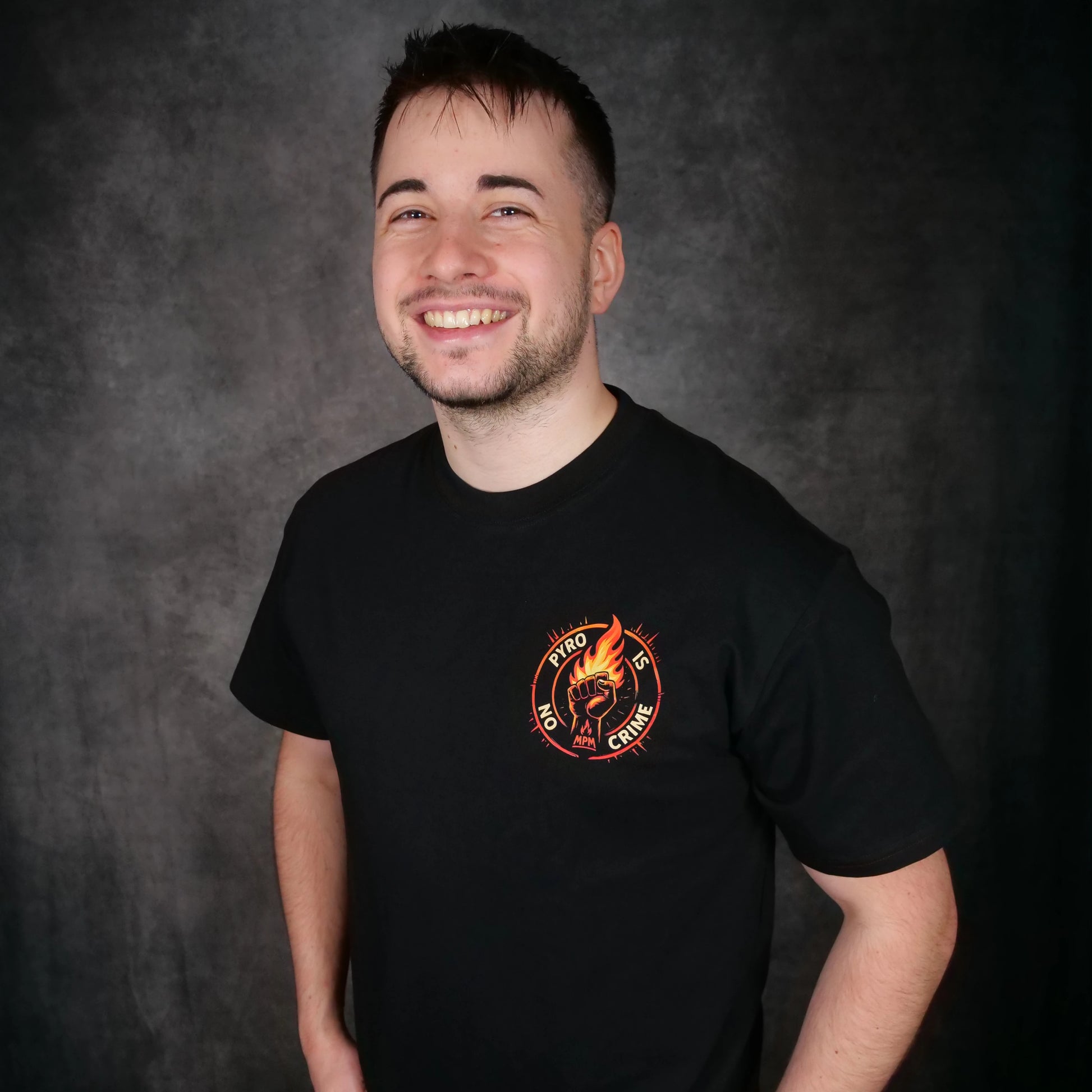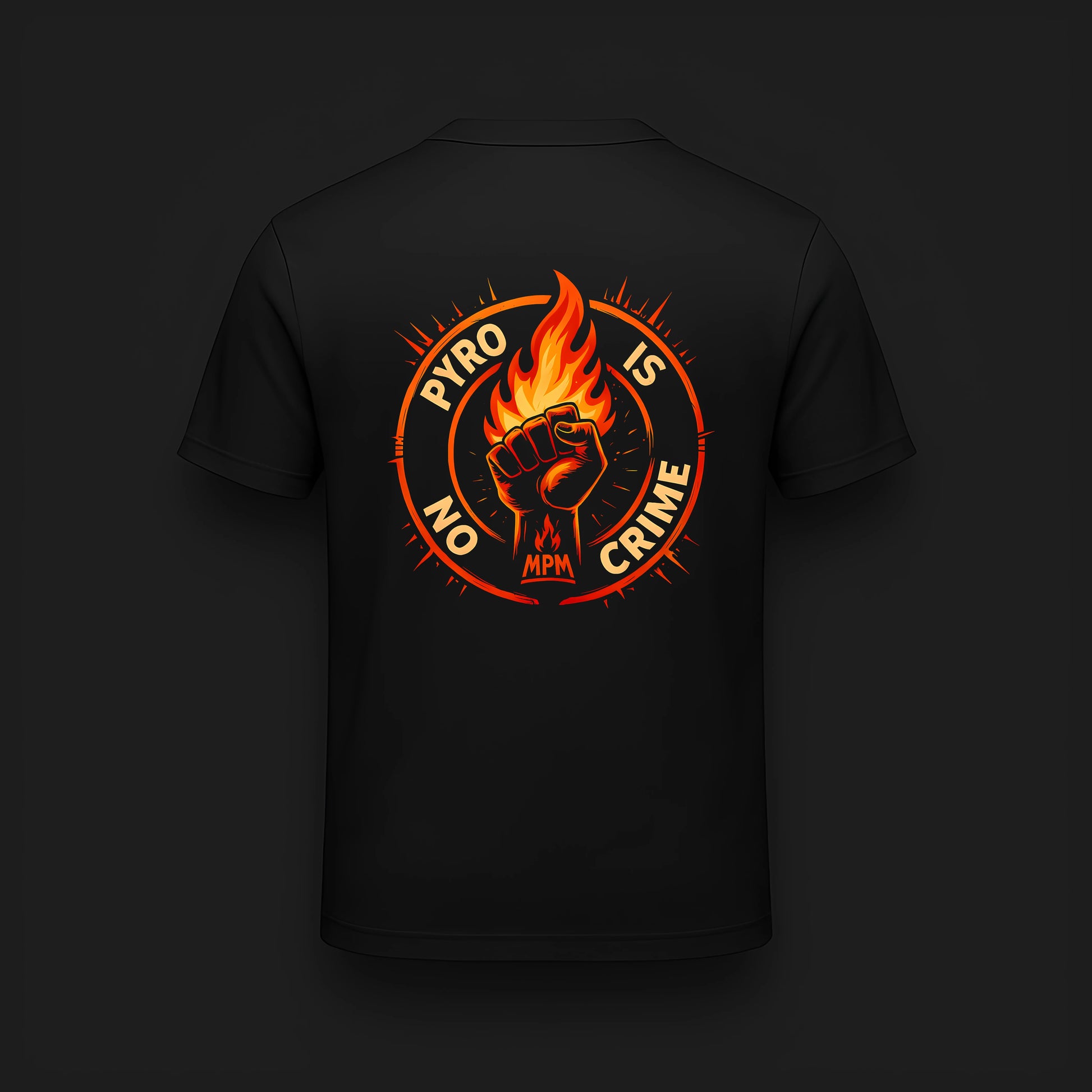 Das PYRO IS NO CRIME T-Shirt 2025 steht für Leidenschaft, Rauch und Licht.