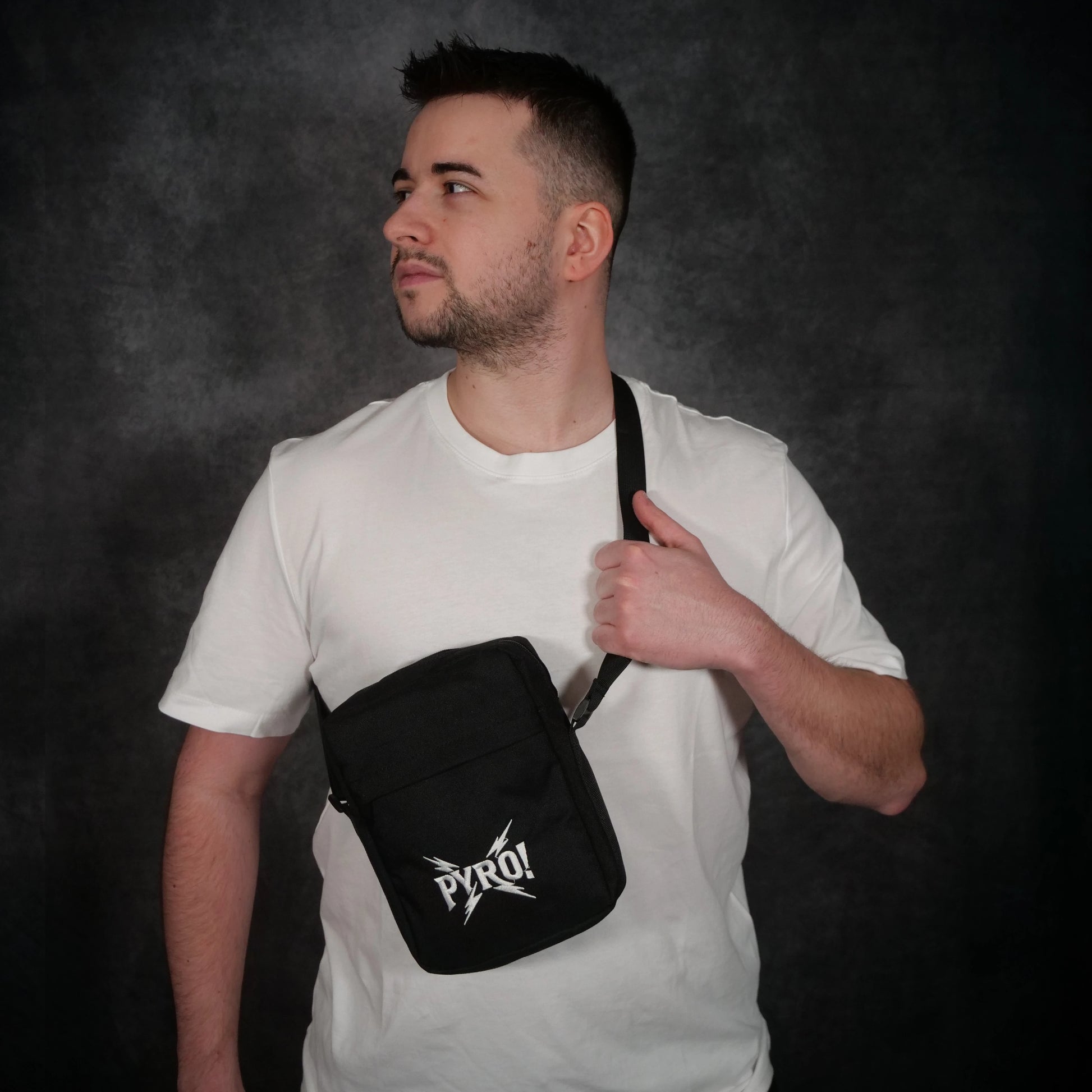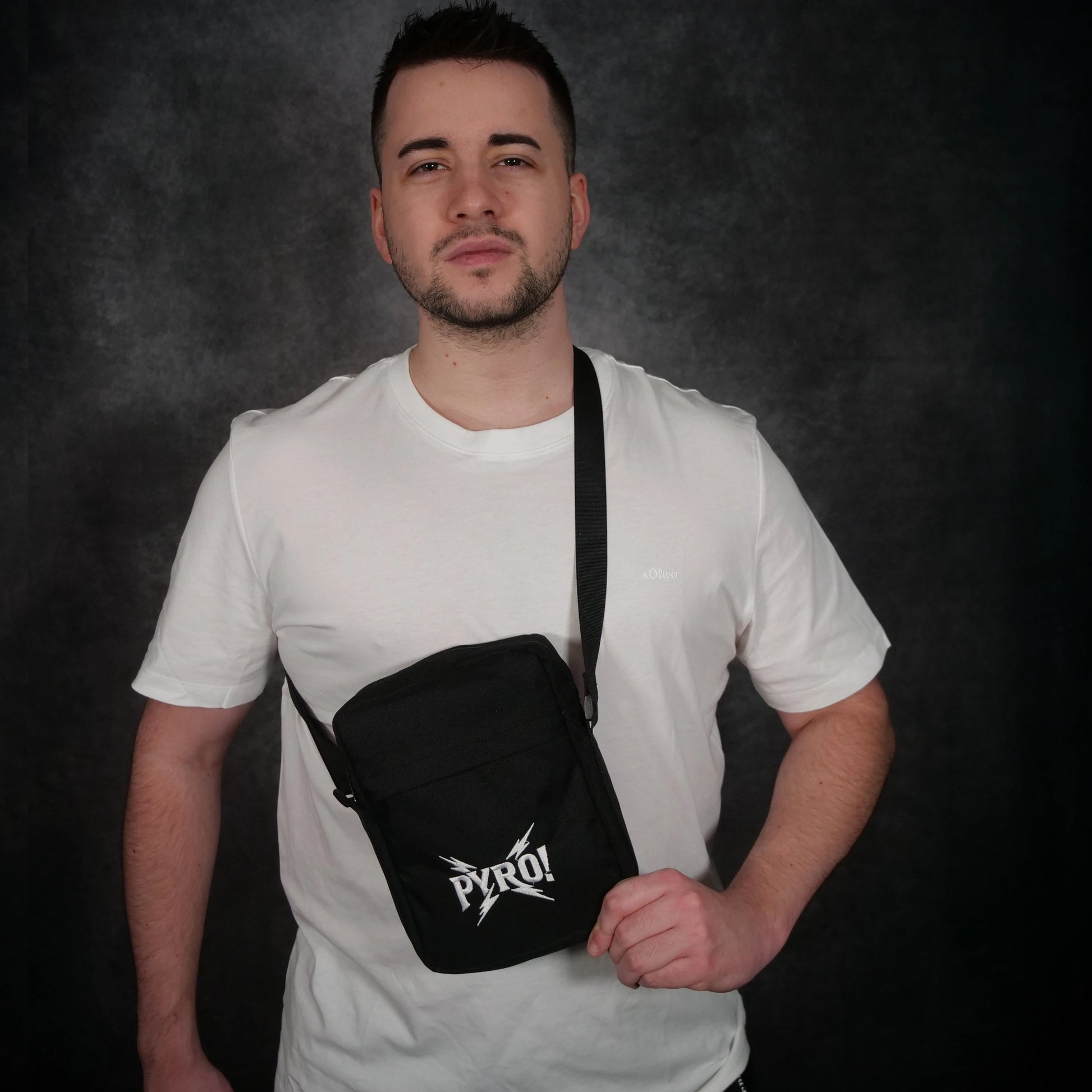 Umhängetasche – PYRO! (Logo mit Stick)